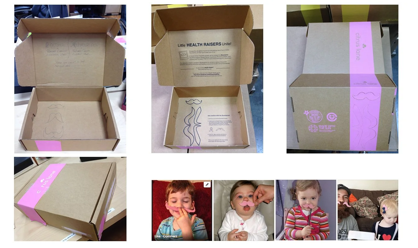 To bring awareness to these two important causes, I collaborated with our VP of Marketing to include cut-outs of pink mustaches and ribbons that parents and children could don together.